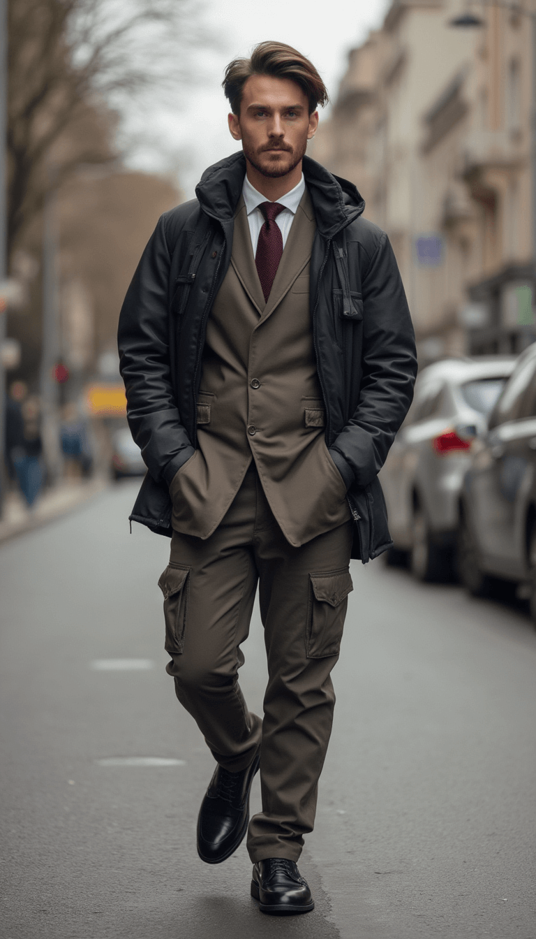 Cool street style portrait of a male model in a black jacket, showcasing a confident and urban vibe.
